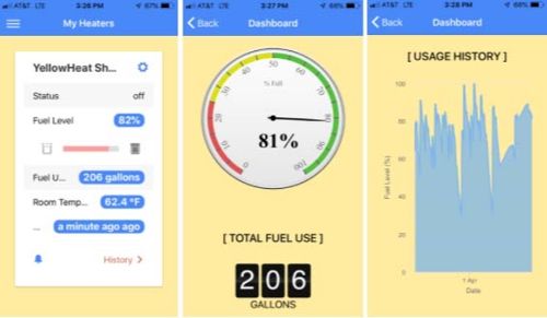 The Yellow Heat app monitors your Yellow Heat Burner. It records operating status, room temperature, fuel supply levels and charts consumption and operation for trends. Available for iphone and soon for Android.